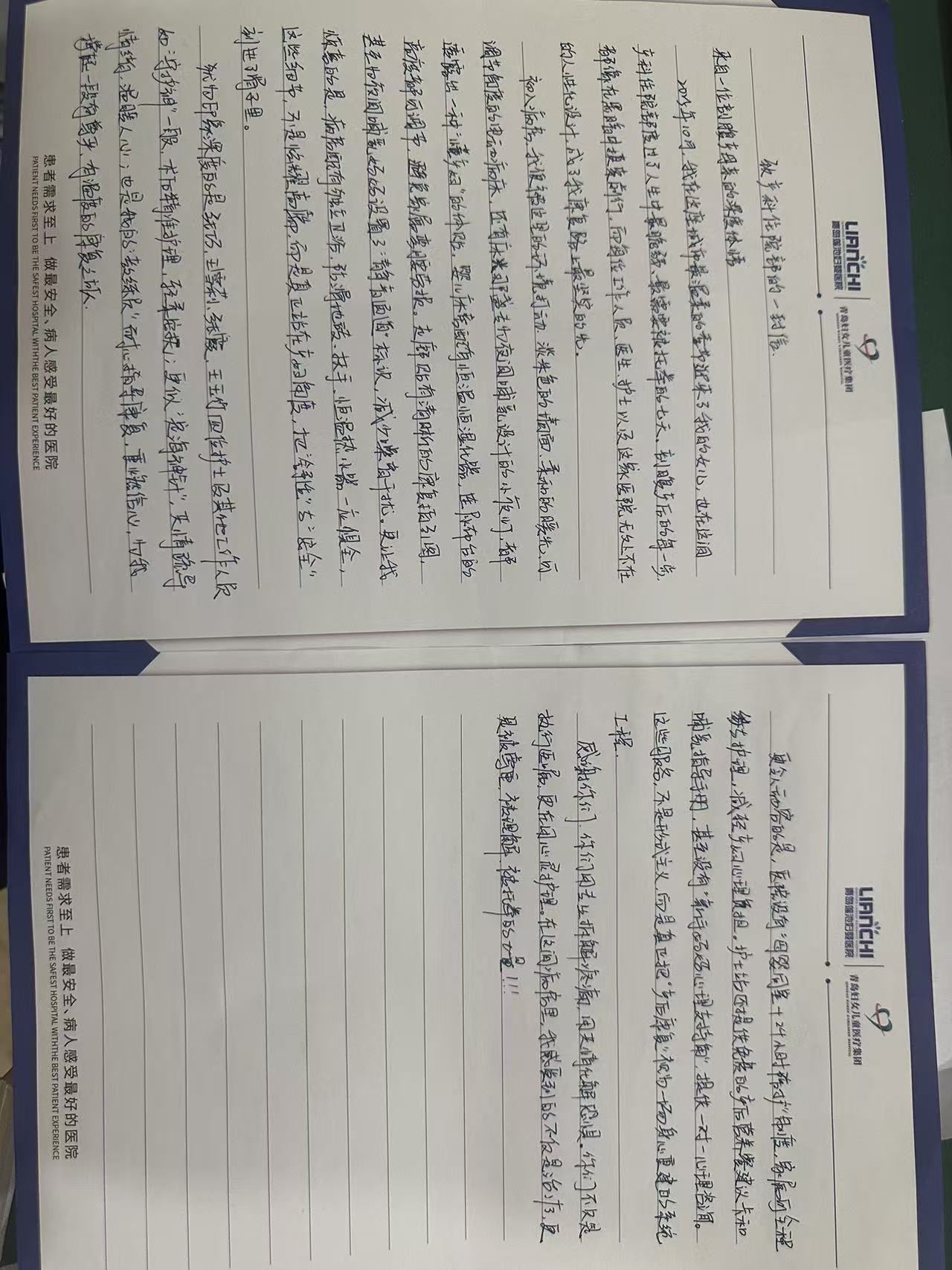 这是来自一位剖宫产妈妈的手写感谢信。她用细腻的笔触,记录了术后在莲池产科住院部的经历——那些藏在病房角落的贴心设计,那些深夜里护士轻轻掖好的被角,那些帮她快速康复的专业指导……如今读来,依旧能触摸到字里行间的暖意。