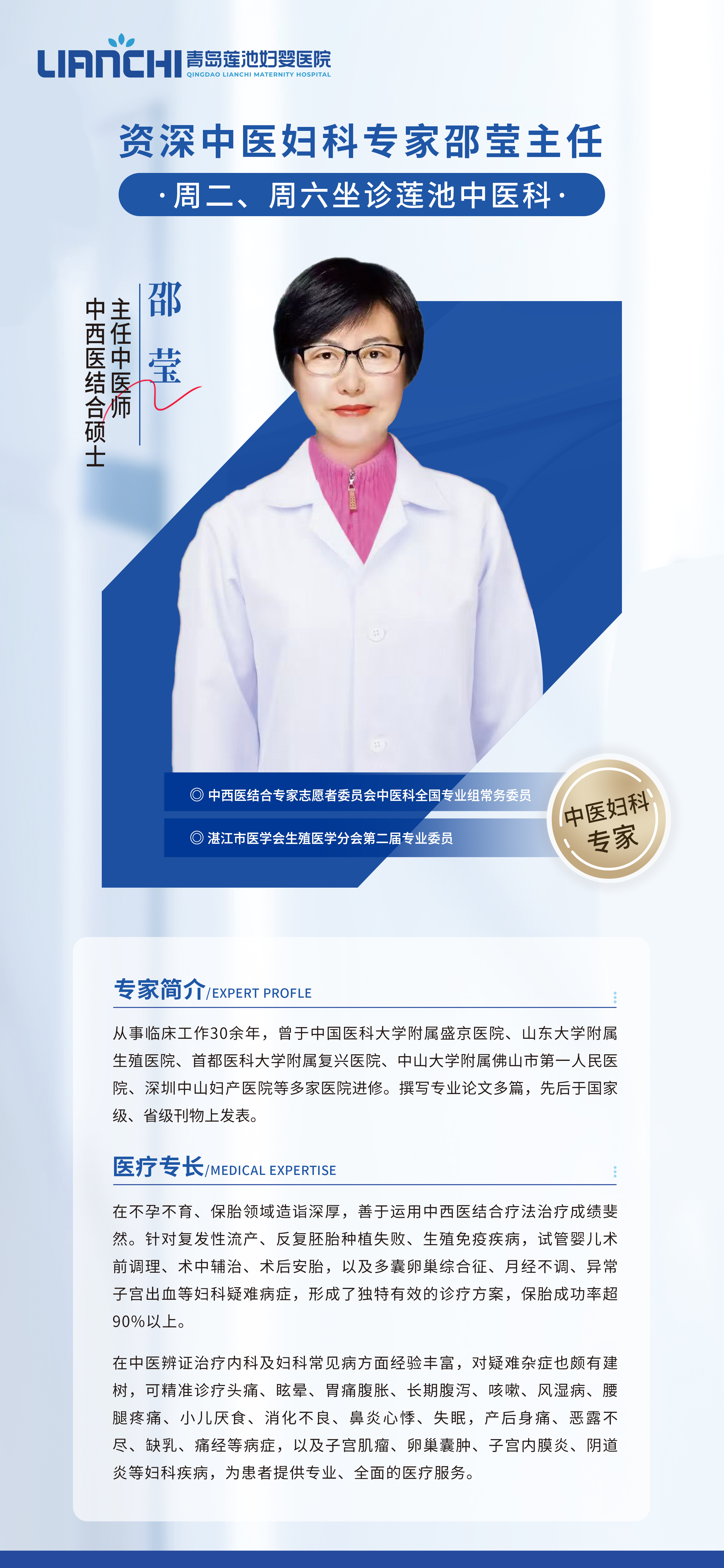 坐诊的邵莹主任,从事临床工作30余年,曾先后于中国医科大学附属盛京医院、山东大学附属生殖医院、首都医科大学附属复兴医院等国内多家顶尖医院进修学习。深厚的学术背景与丰富的跨界经验,让她对复杂病情有着更宏观的洞察和更精准的把握。