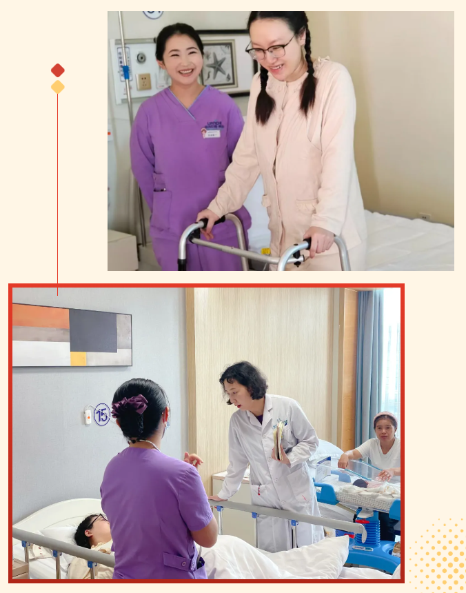 流程规范与宣教前置:规范术后下地“七个步骤”,提前开展康复宣教,在产妇肌力达5级后科学引导早期活动;通过床旁评估宣教沟通大赛“以赛促学”,提升护理团队专业能力。